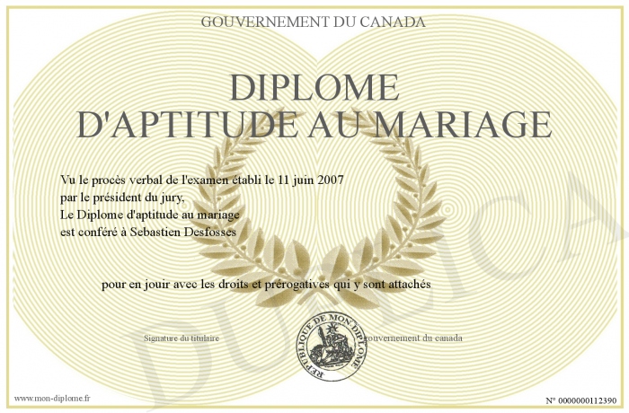 Envoyez par email votre Diplome d'aptitude au mariage personalisé