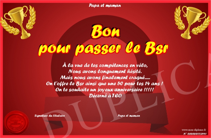 Envoyez par email votre Bon pour passer le Bsr personalisé