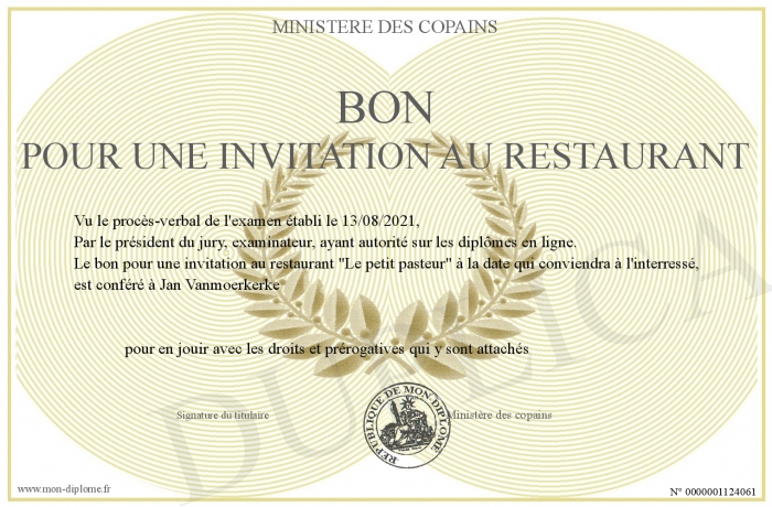 Envoyez par email votre Bon pour une invitation au restaurant personalisé