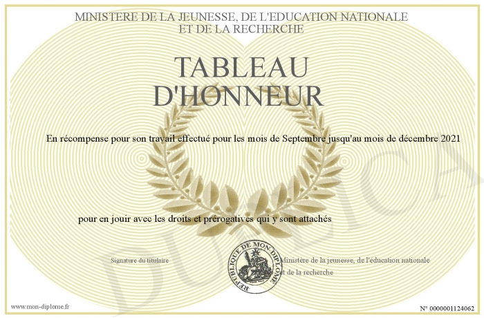 Envoyez par email votre Tableau d'honneur personalisé