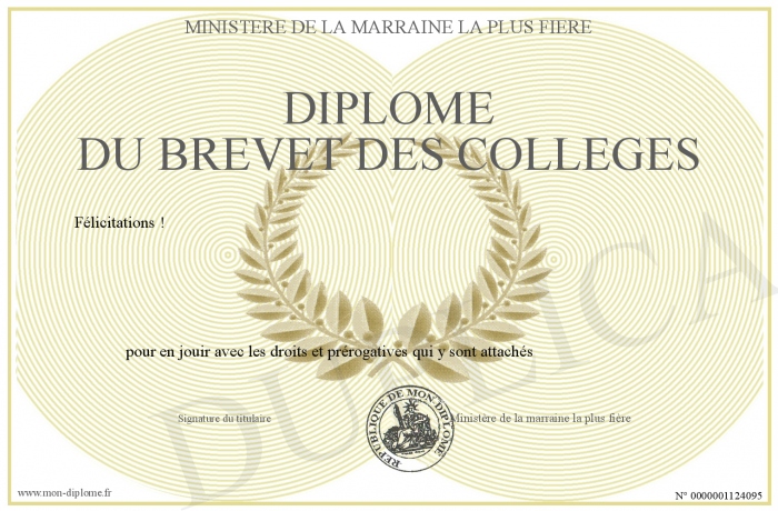 Envoyez par email votre Diplôme du Brevet des Collèges personalisé