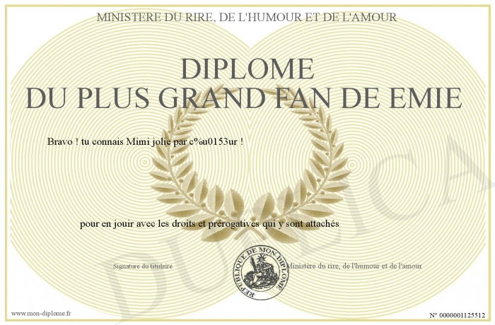 Envoyez par email votre Diplome du plus grand fan De Emie personalisé