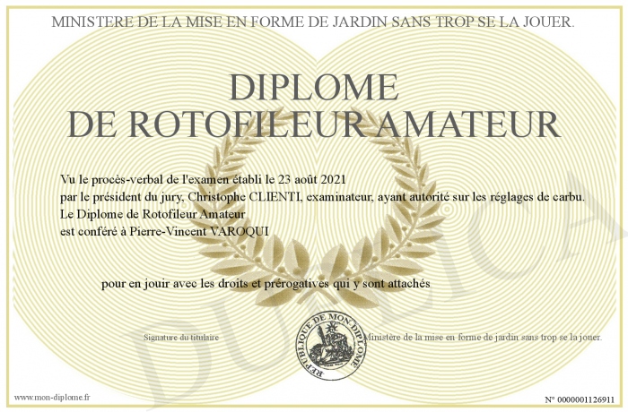 Envoyez par email votre Diplôme de Rotofileur Amateur personalisé