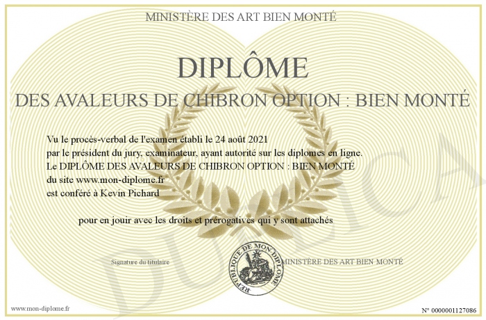 Envoyez par email votre DIPLÔME DES AVALEURS DE CHIBRON OPTION : BIEN MONTÉ personalisé