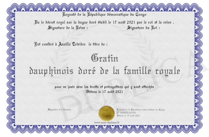 Envoyez par email votre Gratin dauphinois doré de la famille royale personalisé