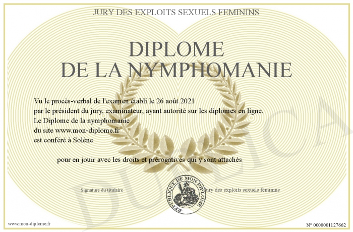 Envoyez par email votre Diplôme de la nymphomanie personalisé
