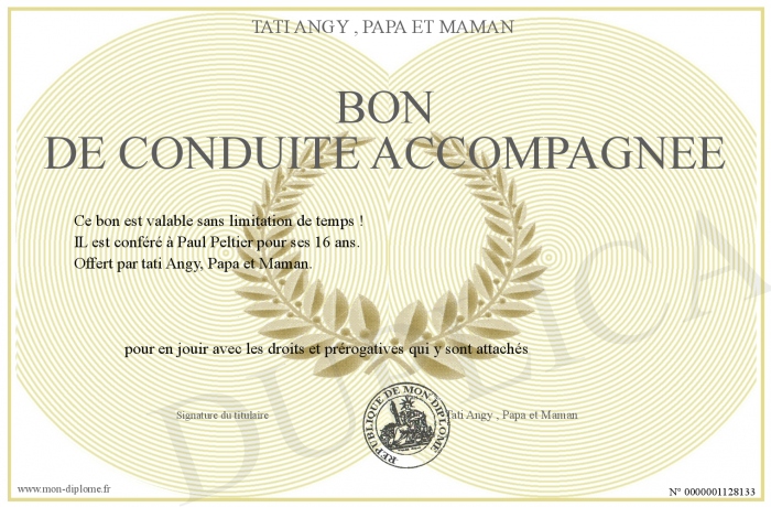 Envoyez par email votre Bon de Conduite Accompagnée personalisé