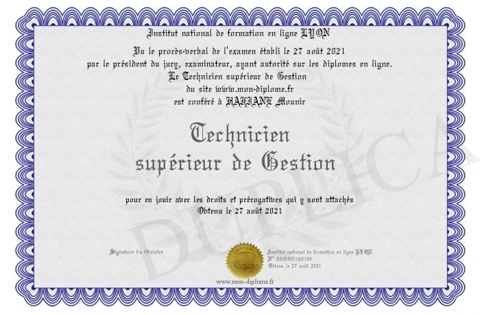 Envoyez par email votre Technicien supérieur de Gestion personalisé