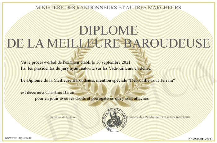 Envoyez par email votre Diplôme de la Meilleure Baroudeuse personalisé