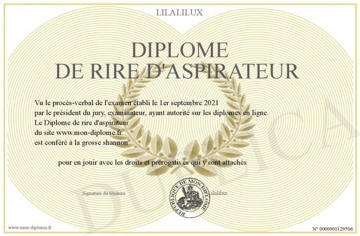 Envoyez par email votre Diplôme de rire d'aspirateur personalisé