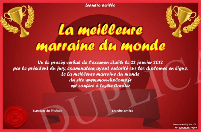Envoyez par email votre La meilleure marraine du monde personalisé