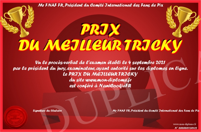 Envoyez par email votre PRIX DU MEILLEUR TRICKY personalisé