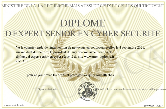 Envoyez par email votre diplôme d'expert senior en cyber sécurité personalisé