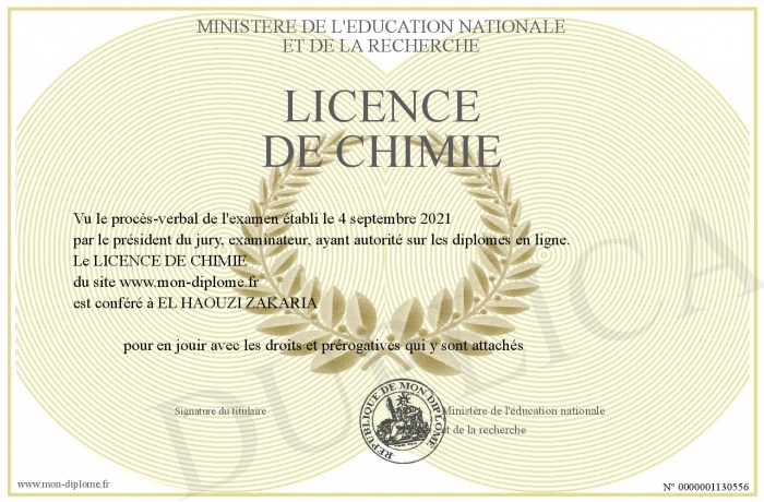 Envoyez par email votre LICENCE DE CHIMIE personalisé