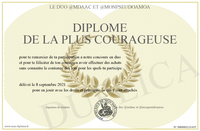 Envoyez par email votre Diplôme de la plus courageuse personalisé