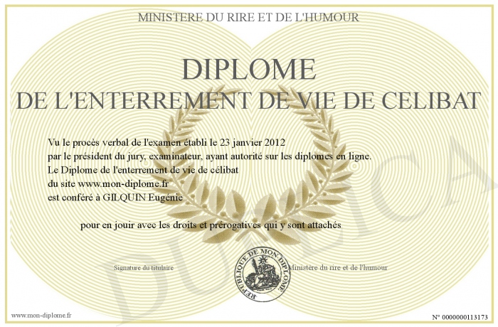 Envoyez par email votre Diplôme de l'enterrement de vie de célibat personalisé