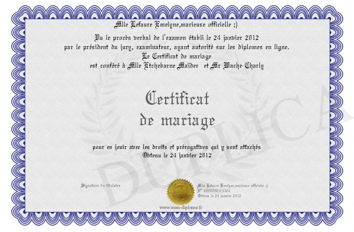Envoyez par email votre Certificat de mariage personalisé
