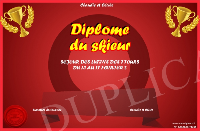 Envoyez par email votre Diplome du skieur personalisé