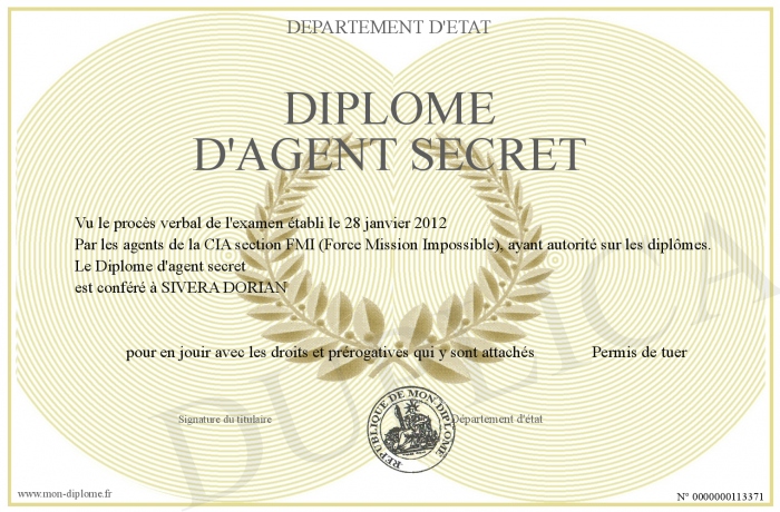Envoyez par email votre Diplôme d'agent secret personalisé