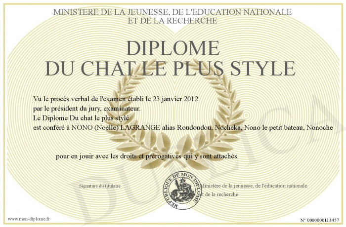 • Diplôme Du chat le plus stylé