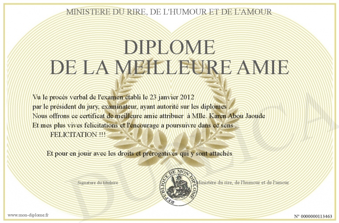 Envoyez par email votre Diplome de la meilleure Amie personalisé