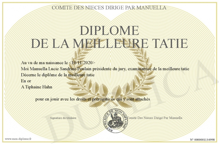 Envoyez par email votre Diplôme De La Meilleure Tatie personalisé