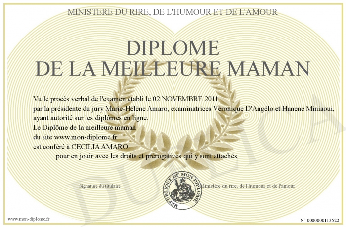 Envoyez par email votre Diplôme de la meilleure maman personalisé