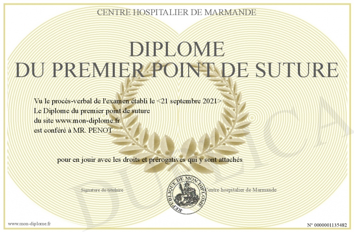 Envoyez par email votre Diplôme du premier point de suture personalisé