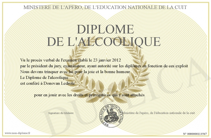 • Diplôme de l'alcoolique