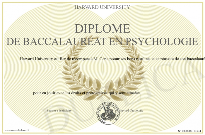 Envoyez par email votre diplome de baccalauréat en psychologie personalisé