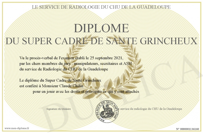 Envoyez par email votre Diplôme du super cadre de santé grincheux personalisé