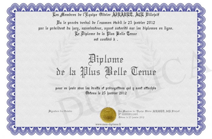 Envoyez par email votre Diplôme de la Plus Belle Tenue personalisé