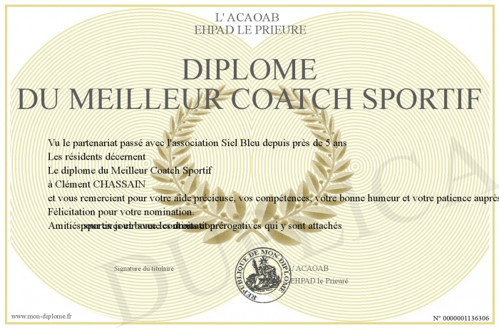 Envoyez par email votre Diplôme du Meilleur Coatch sportif personalisé