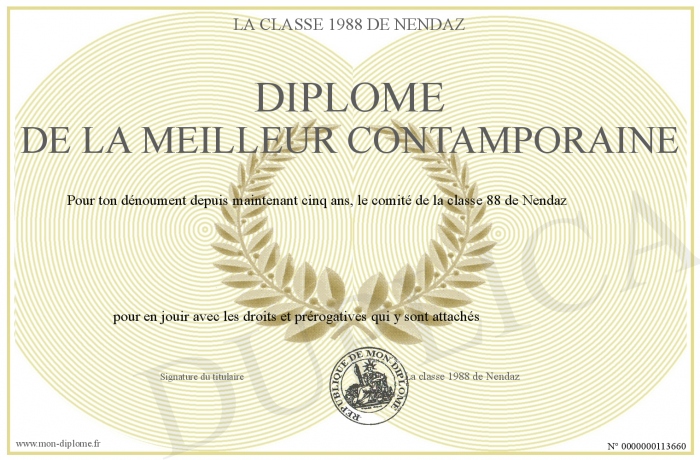 Envoyez par email votre Diplome de la meilleur contamporaine personalisé