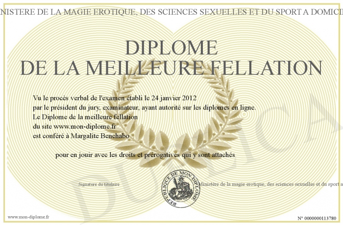 Envoyez par email votre Diplôme de la meilleure fellation personalisé