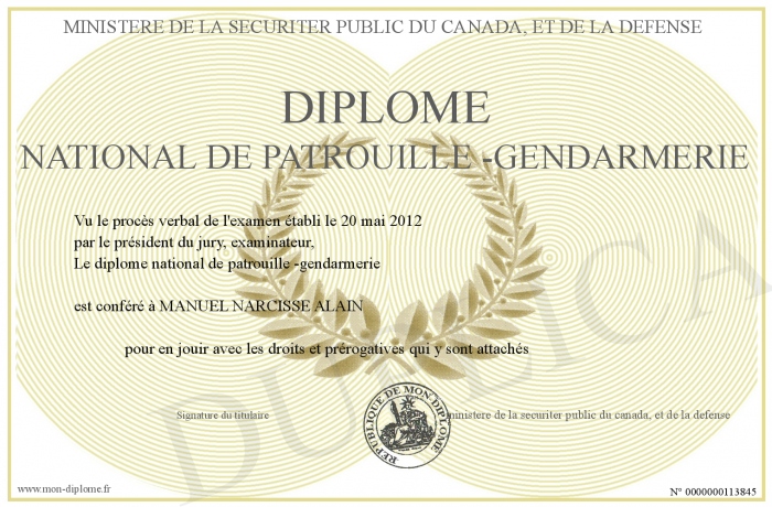 Envoyez par email votre diplôme national de patrouille -gendarmerie personalisé