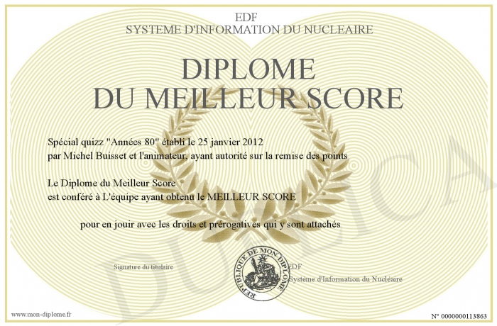 Envoyez par email votre Diplôme du Meilleur Score personalisé