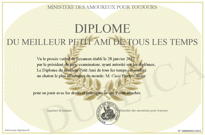 Envoyez par email votre Diplôme du meilleur Petit Ami de tous les temps personalisé