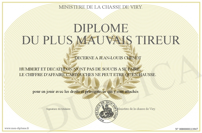 Envoyez par email votre DIPLOME DU PLUS MAUVAIS TIREUR personalisé
