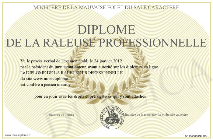 Envoyez par email votre DIPLOME DE LA RALEUSE PROFESSIONNELLE personalisé