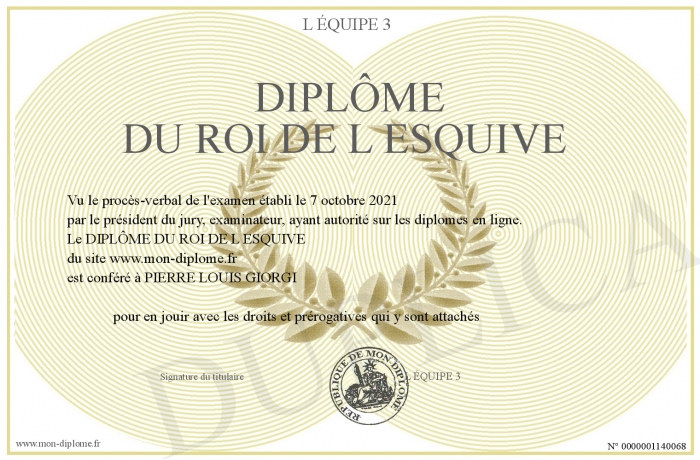 Envoyez par email votre DIPLÔME DU ROI DE L ESQUIVE personalisé