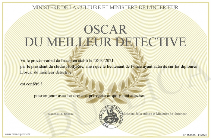 Envoyez par email votre Oscar du meilleur detective personalisé