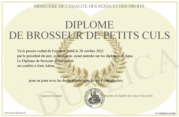 Envoyez par email votre Diplôme de brosseur de petits culs personalisé