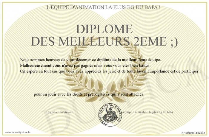 Envoyez par email votre Diplôme des Meilleurs 2éme ;) personalisé
