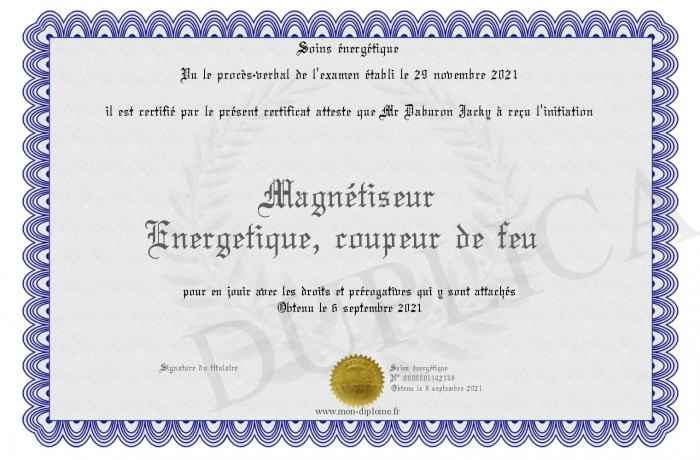 Envoyez par email votre Magnétiseur Energetique, coupeur de feu personalisé