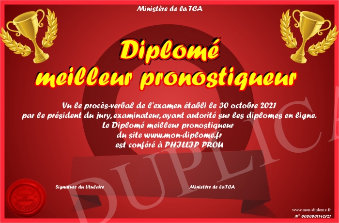 Envoyez par email votre Diplômé meilleur pronostiqueur personalisé