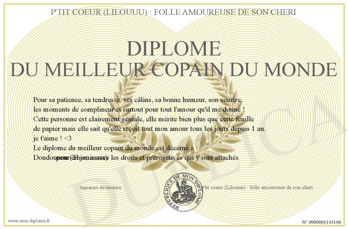 Envoyez par email votre Diplôme du meilleur copain du monde personalisé