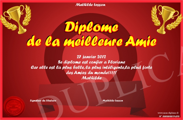 Envoyez par email votre Diplome de la meilleure Amie personalisé