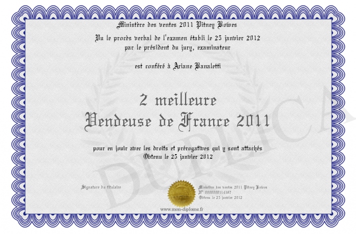 Envoyez par email votre 2 meilleure Vendeuse de France 2011 personalisé