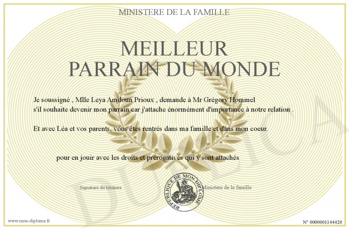 Envoyez par email votre Meilleur parrain du monde personalisé